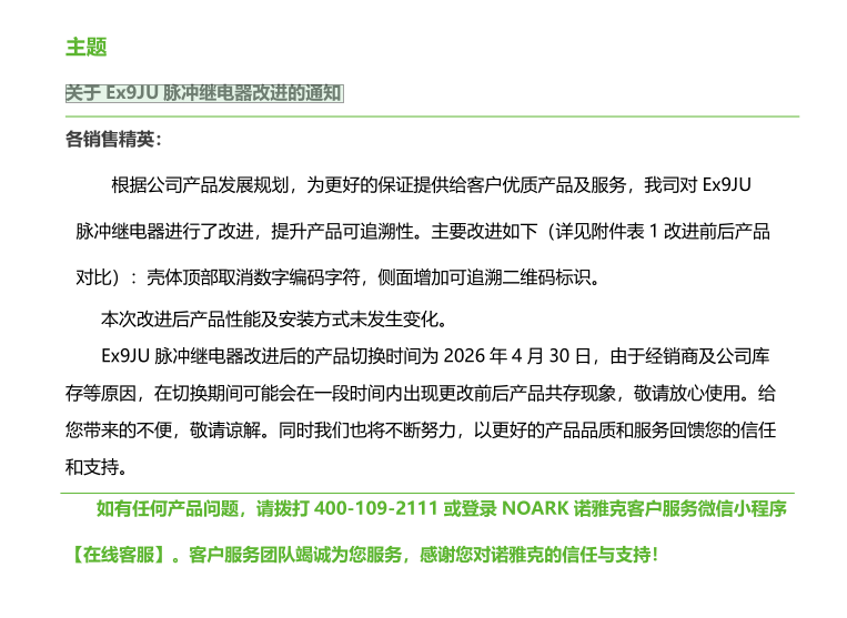 关于 Ex9JU 脉冲继电器改进的通知